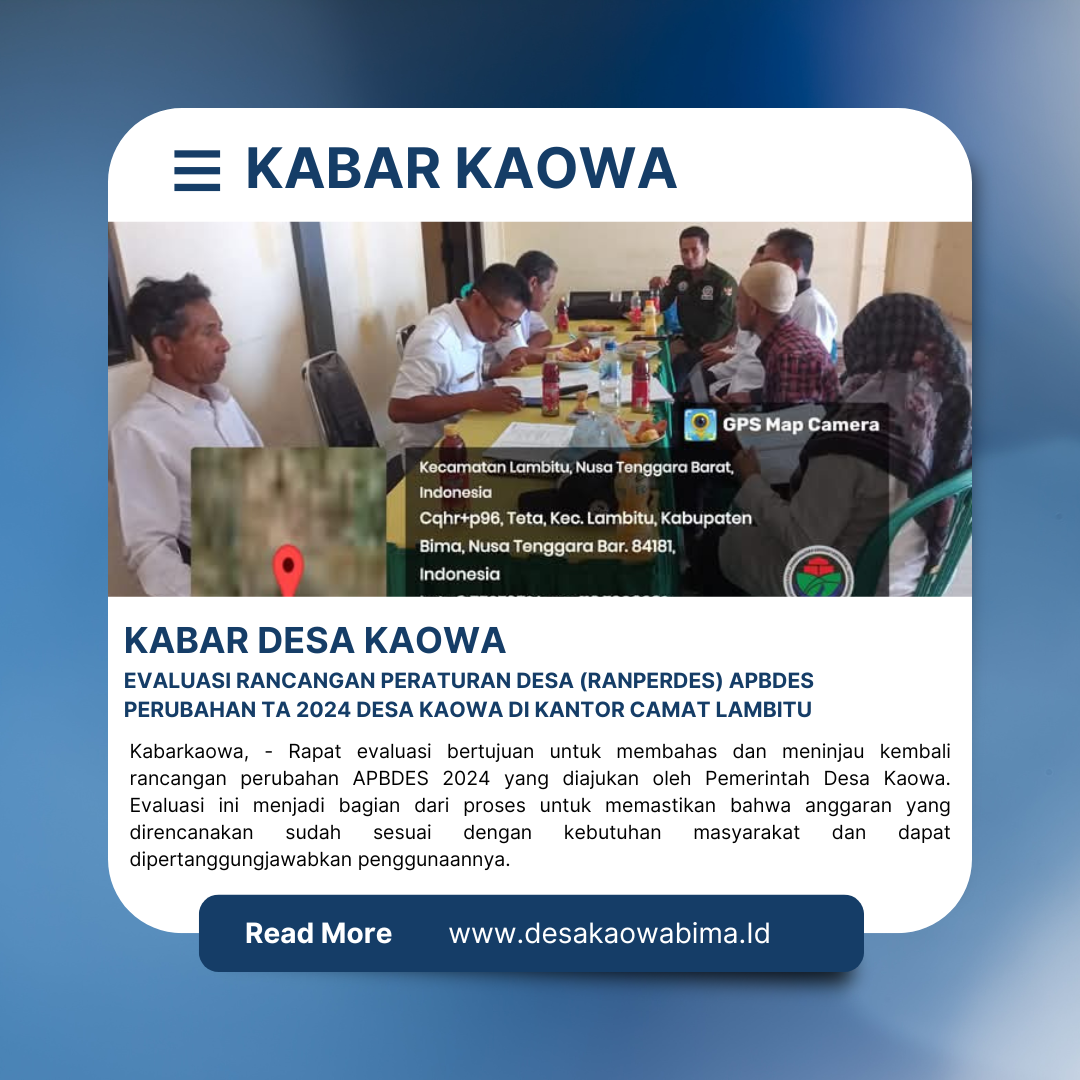 Setelah evaluasi selesai, RANPERDES APBDES Perubahan TA 2024 akan disempurnakan dan segera diajukan untuk dibahas lebih lanjut di tingkat desa, sebelum akhirnya disahkan menjadi peraturan desa. Dengan adanya evaluasi ini, diharapkan anggaran yang disusun dapat lebih tepat sasaran, efisien, dan bermanfaat untuk kemajuan Desa Kaowa.