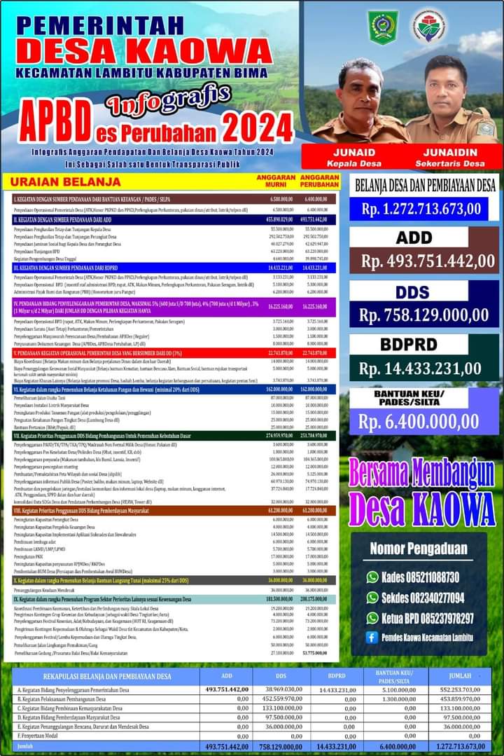 Infografis Anggaran Pendapatan dan Belanja Desa Kaowa Tahun 2024sebagai bentuk salah satu transparasi publik